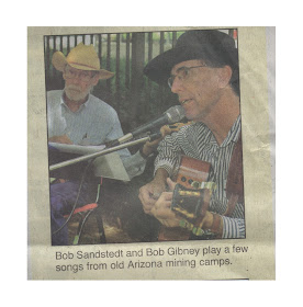 Thanks to Bob Sanstedt, who added his fine banjo playing to back up my historic and mining songs. He sang a few of his favorite songs and played some banjo instrumentals. Our photo appeared in the Prescott Courier.